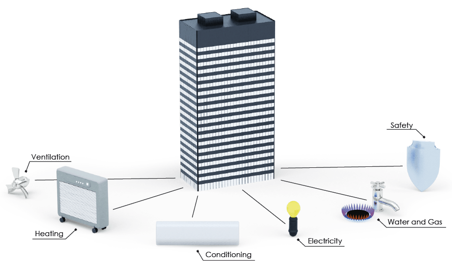 Sistemele de tip BMS sunt formate din trei nivele de funtionare: nivelul echipamentelor de camp (senzori, traductoare), al echipamentelor de comanda (controlere, module) si nivelul de comunicare (webserverele, calculatoarele cu soft dedicat).